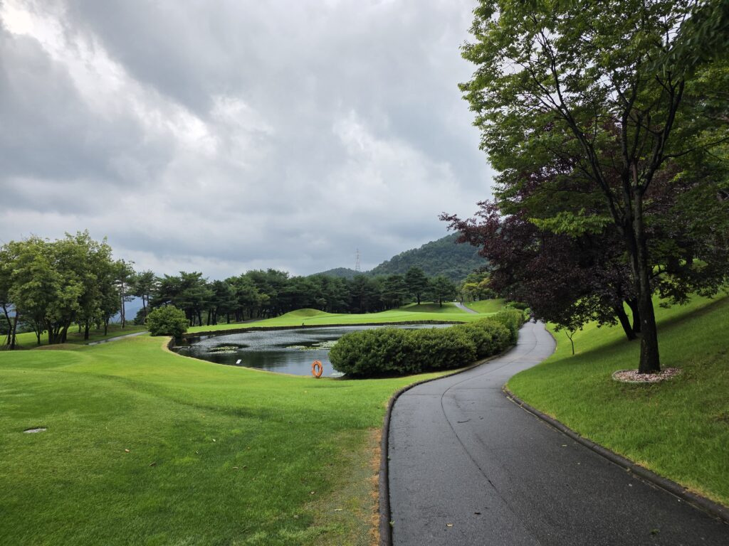 We tee’d off but after our drives, it started to rain pretty heavy so we retreated back to the cart to see if the rain would pass by. It did a few minutes later so we continued to play.