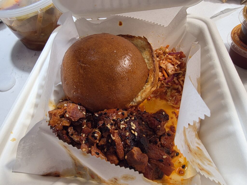 After the round, I stopped by Heirloom BBQ for the good Southern / Korean bbq brisket, ribs, pork, etc.!